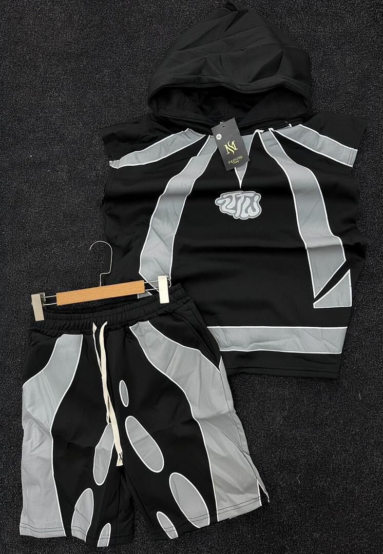 Optez pour cet ensemble sport tendance pour homme, comprenant un haut à capuche et un short. Confortable et élégant, idéal pour l'entraînement et les loisirs. Fabriqué avec des matériaux respirants pour une performance optimale.