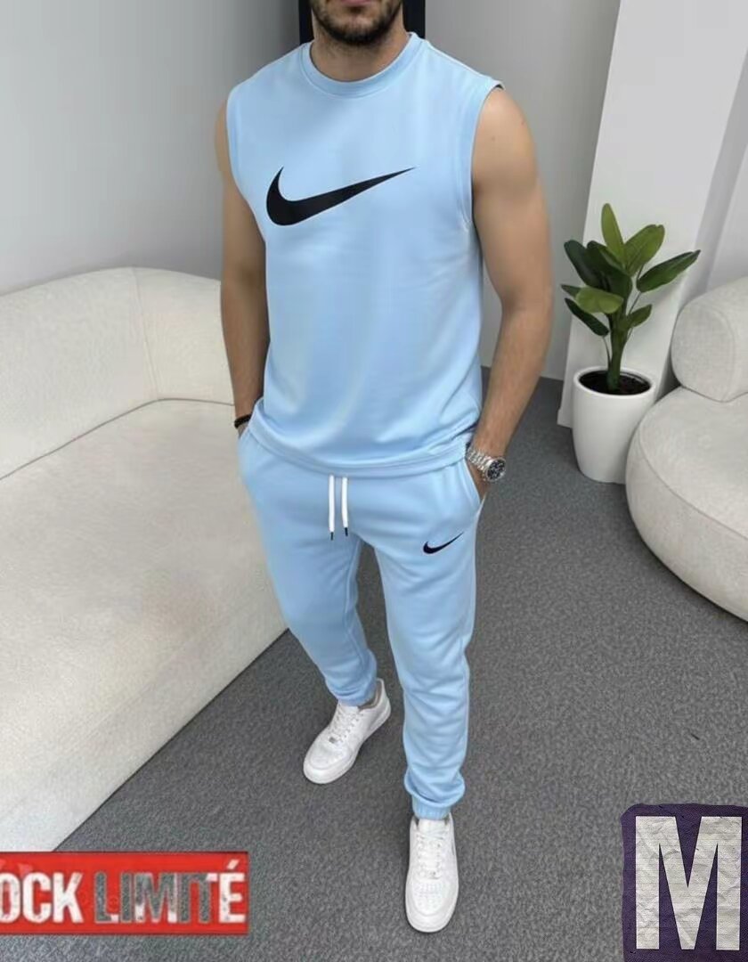 Découvrez cet ensemble de sport Nike pour homme en bleu clair, parfait pour vos séances d'entraînement ou une journée décontractée. Fabriqué en matière confortable, il assure un maximum de liberté de mouvement. Son design moderne et son logo iconique vous garantissent un look tendance. Idéal pour le sport ou le quotidien!