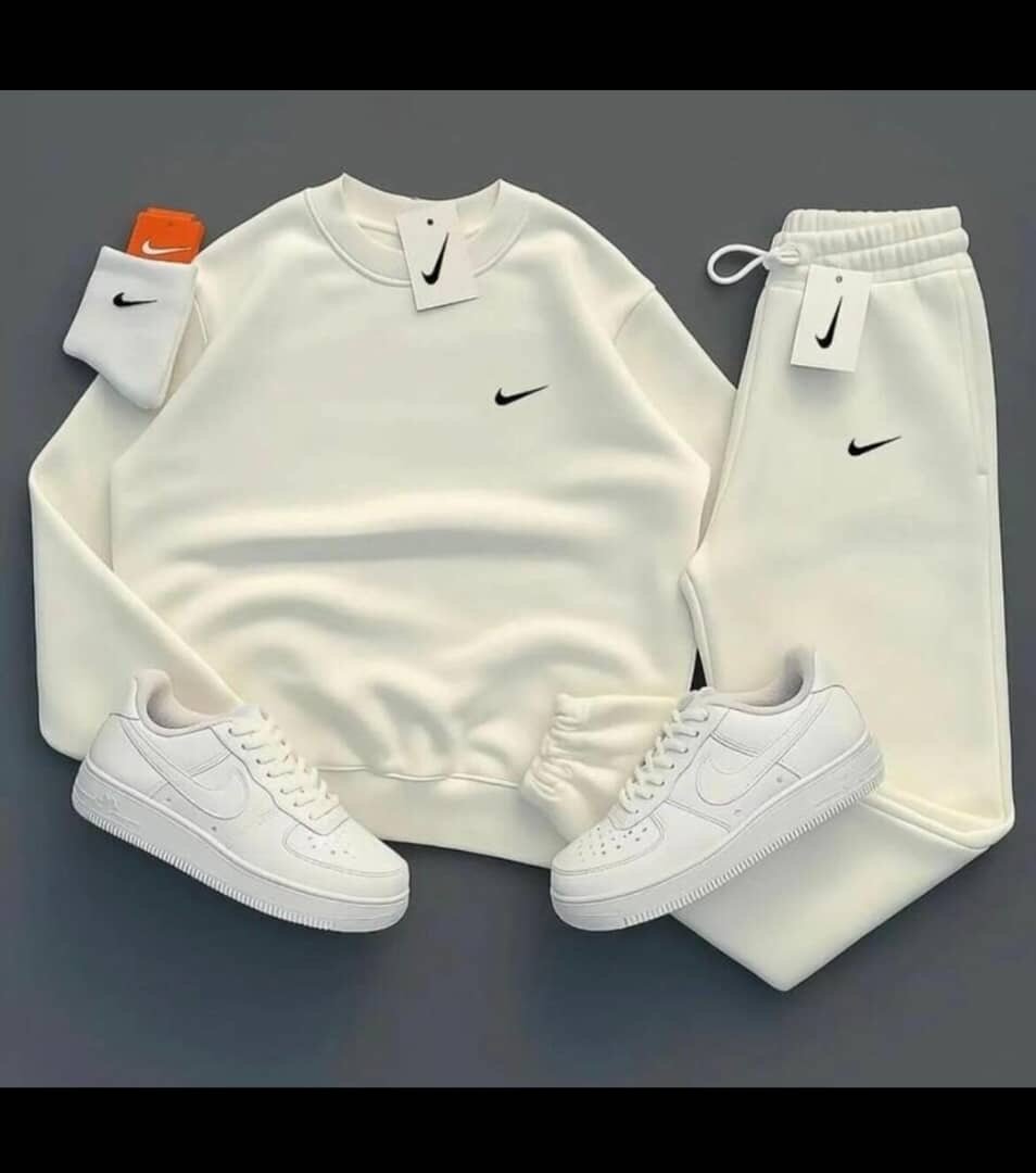 Découvrez notre ensemble sportswear Nike, idéal pour une allure décontractée et stylée. Disponible en bleu et blanc, ce set comprend un sweat confortable, un pantalon de jogging et des baskets assorties. Parfait pour le sport comme pour le quotidien, il offre un confort inégalé et un style tendance.