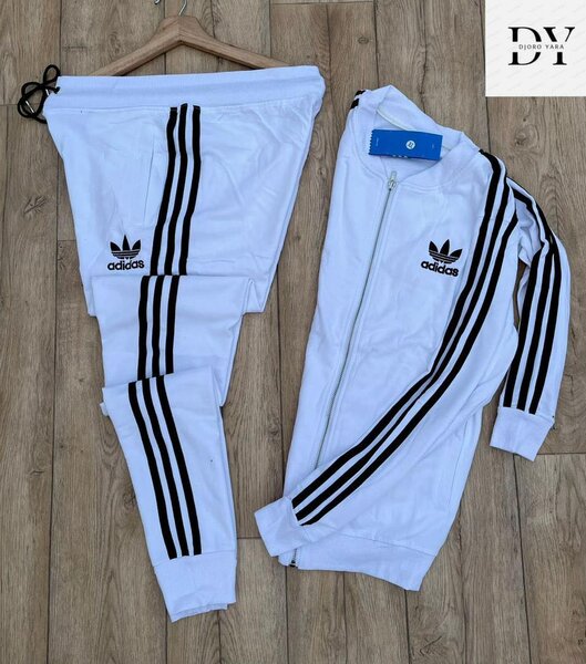 Ensemble de sport élégant et confortable, idéal pour les activités sportives ou décontractées. Composé d'un haut rose à manches longues avec bandes noires et un pantalon noir avec bandes blanches. Parfait pour les amateurs de style et confort. Associez-le avec des baskets pour un look dynamique et tendance.