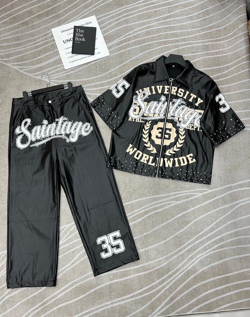 Découvrez notre ensemble sport en satin noir, idéal pour un look décontracté et stylé. Parfait pour vos sorties urbaines, il allie confort et tendance avec des imprimés remarquables qui ne laisseront personne indifférent. Disponible avec chemise et pantalon arborant des motifs audacieux, cet ensemble est un choix parfait pour affirmer votre style. Commandez dès aujourd'hui pour un look inégalé!