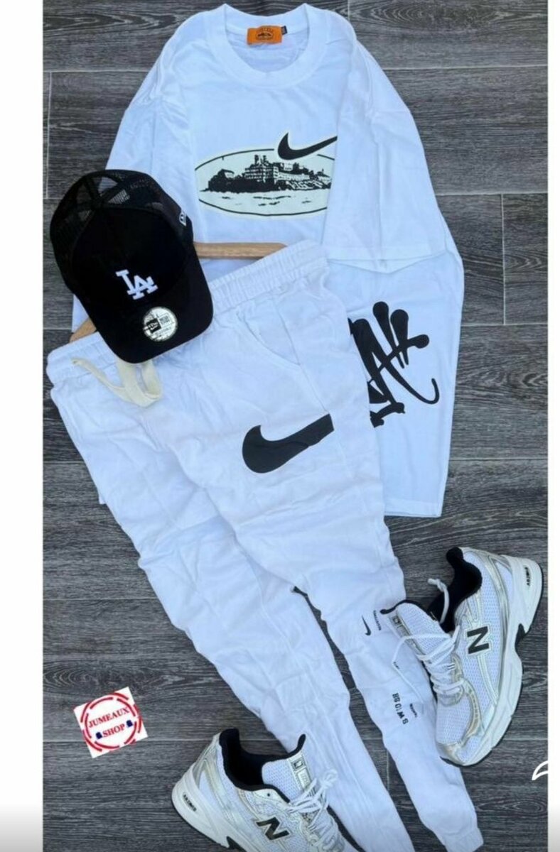 Redécouvrez le confort et le style avec cet ensemble streetwear blanc, comprenant un sweat-shirt graphique, un pantalon assorti et des baskets élégantes. Parfait pour un look décontracté et tendance, idéal pour le quotidien ou les sorties entre amis.