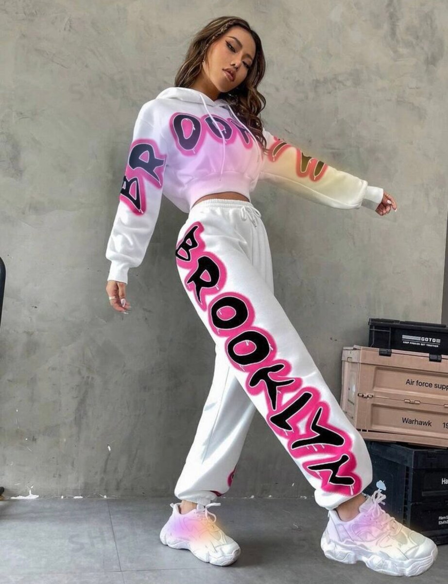 Découvrez notre ensemble streetwear Brooklyn, composé d'un sweat à capuche et d'un pantalon avec imprimé audacieux. Idéal pour un look urbain et tendance, cet ensemble offre confort et style. Parfait pour les sorties décontractées et les promenades en ville. Ne manquez pas l'occasion d'exprimer votre style unique avec cet ensemble incontournable.