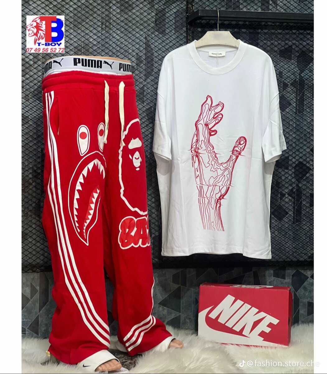 Adoptez un style urbain avec cet ensemble streetwear pour homme. Comprenant un pantalon rouge audacieux et un t-shirt blanc imprimé, c'est le choix parfait pour un look tendance et confortable. Idéal pour la ville ou les sorties décontractées, affichez votre esprit avant-gardiste avec ce set innovant.