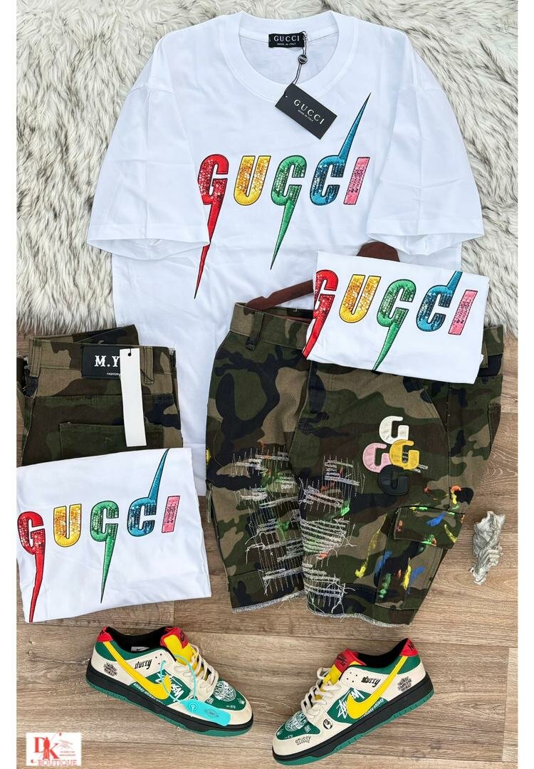 Adoptez un style urbain avec cet ensemble streetwear à la mode. Parfait pour une sortie entre amis ou une journée décontractée. Comprend un t-shirt graphique, short stylé, et des accessoires assortis pour un look complet.