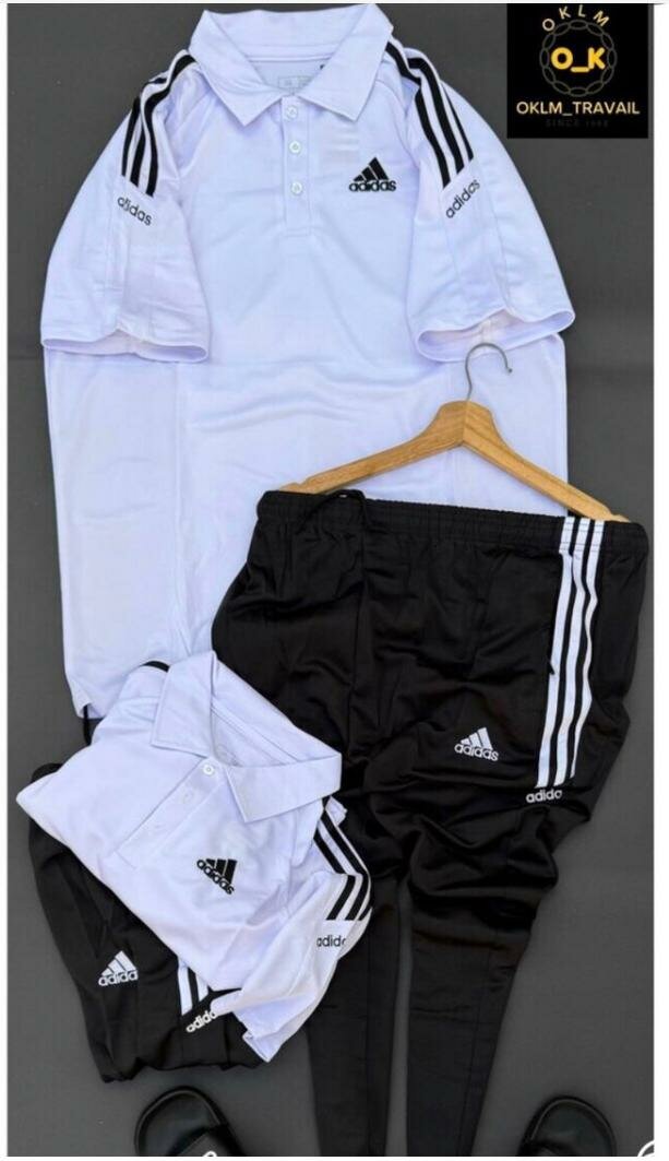 Découvrez cet ensemble survêtement Adidas pour homme, composé d'un polo et d'un pantalon. Conçu pour le sport et le quotidien, il offre confort et style avec ses bandes iconiques et son logo Adidas.