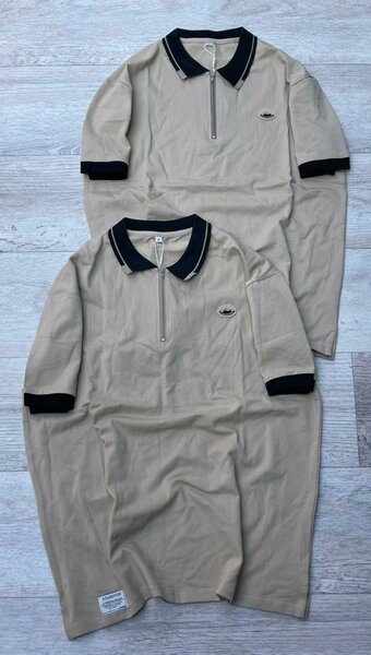 Ensemble survêtement homme en beige. Confortable et élégant. Idéal pour le sport et le quotidien. Comprend un haut avec col et un pantalon avec élastique.