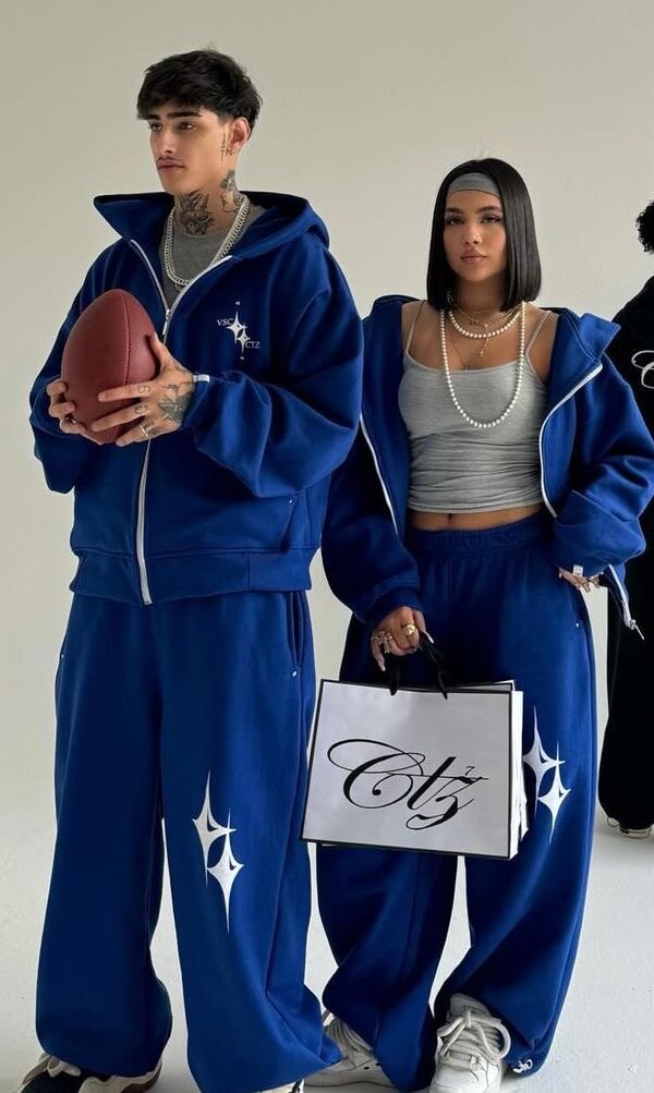 Découvrez cet ensemble survêtement bleu moderne et confortable, parfait pour un look décontracté et stylé. Fabriqué avec des matériaux doux, il est idéal pour les sorties décontractées ou pour se détendre à la maison. Son design unique avec des accents brillants ajoutera une touche tendance à votre garde-robe. Un choix parfait pour les amateurs de mode urbaine!