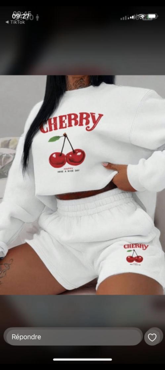 Ensemble survêtement moderne avec imprimé cerise, idéal pour un look décontracté. Tissu doux et confortable, parfait pour les sorties ou le repos à la maison. Choix parfait pour les amoureuses de la mode fruitée.