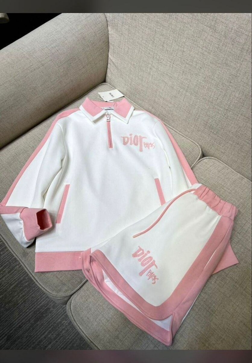 Élégant ensemble survêtement Dior pour femme. Conçu pour le confort et le style, ce survêtement deux pièces comprend un haut à zip et un pantalon assorti. Idéal pour les sorties décontractées ou le sportswear chic.