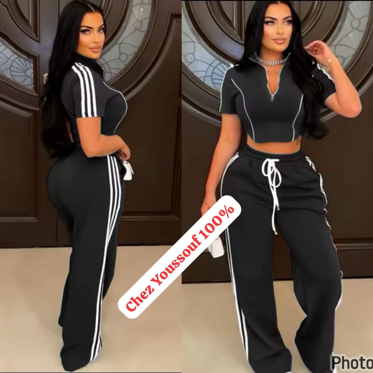 Ensemble survêtement et crop top. Confortable et élégant. Disponible en rouge, vert et noir.
