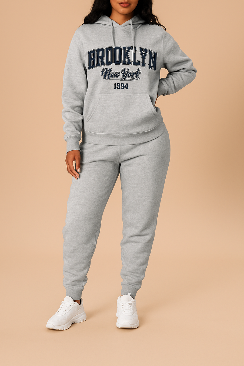 Découvrez notre ensemble de survêtement élégant et confortable, idéal pour un look casual et tendance. Fabriqué en coton doux, ce set comprend un sweat à capuche avec l'impression 'Brooklyn New York'. Parfait pour les journées décontractées ou une séance de sport, cet ensemble vous offre un confort ultime. Taille ajustée pour une allure soignée.