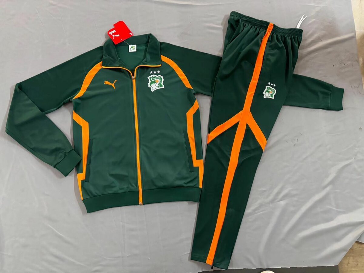 Ensemble de survêtement pour homme, idéal pour les fans de football. Disponible en plusieurs couleurs avec logo. Parfait pour les entraînements ou la détente. Fabriqué en matériaux confortables et résistants.