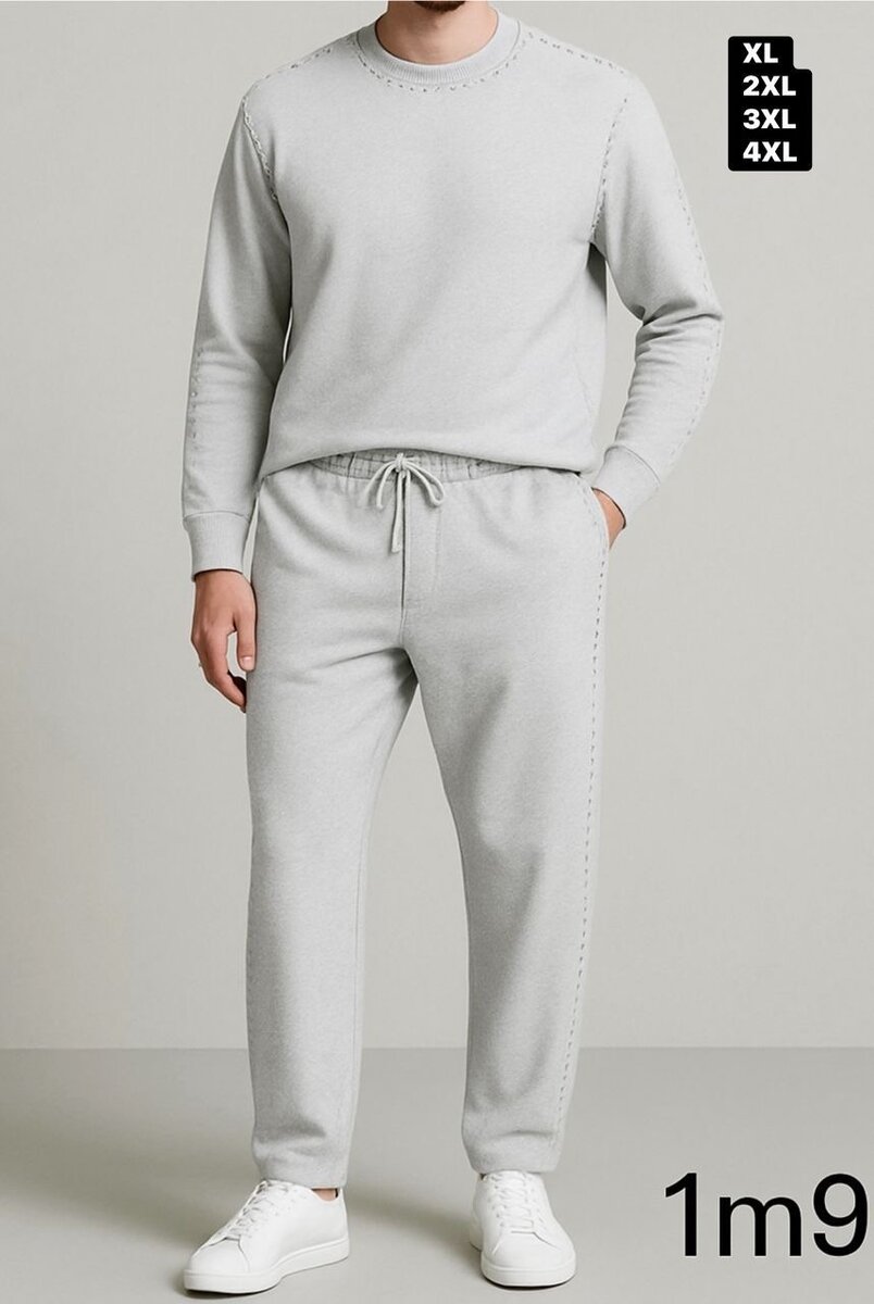 Ensemble survêtement homme gris confortable et élégant, taille XL à 4XL. Conçu pour un usage quotidien, idéal pour le sport ou la détente.