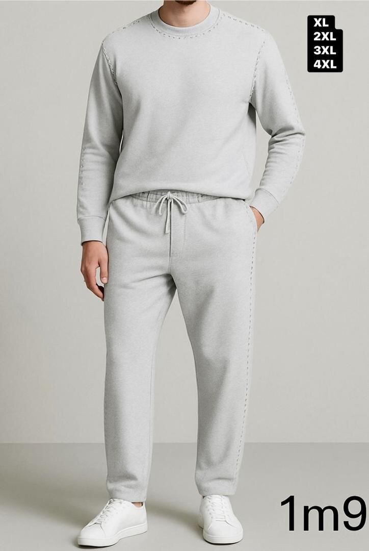Survêtement gris confortable pour homme, taille élastique, poche pratique. Conçu pour un usage quotidien décontracté. Disponible en plusieurs tailles : XL, 2XL, 3XL, 4XL.