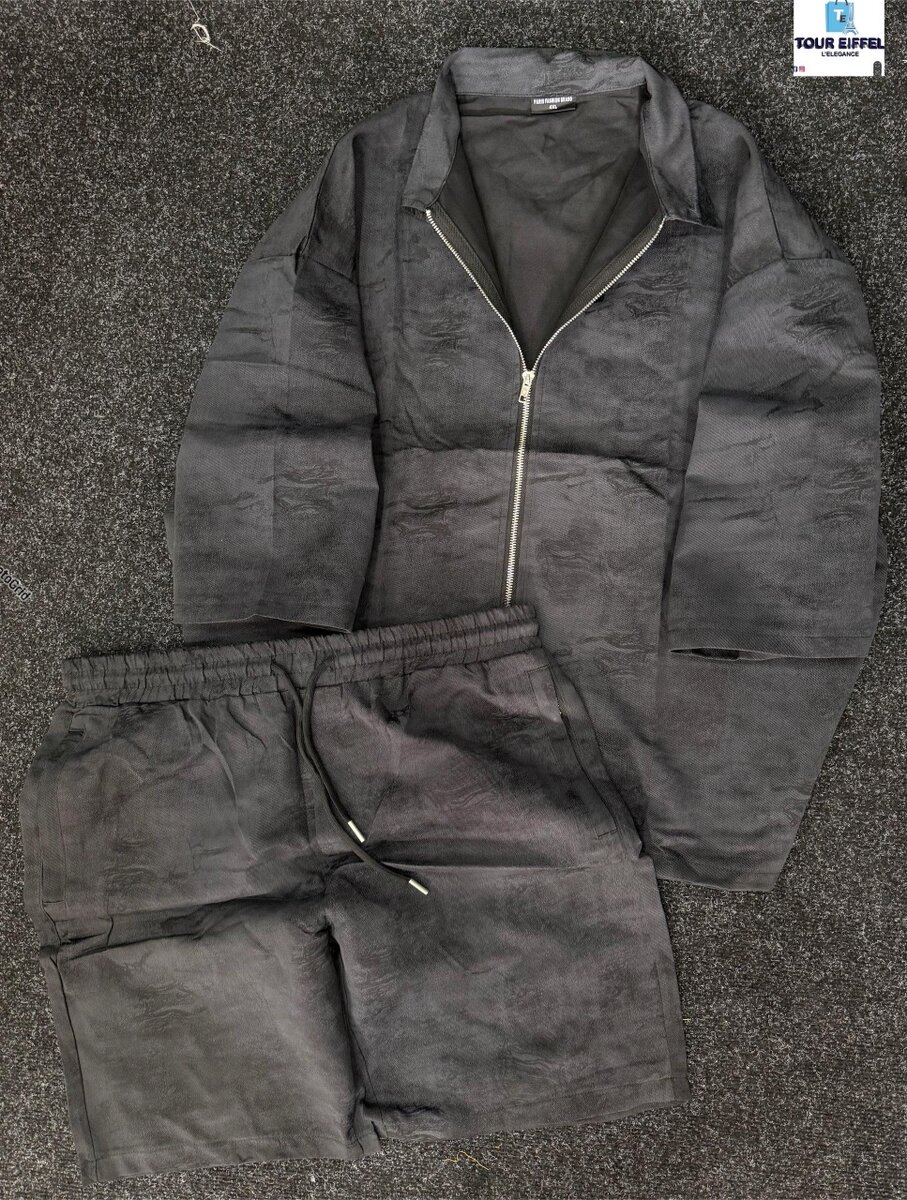 Confort et style avec cet ensemble survêtement pour homme. Veste à zip et short assorti pour une tenue complète. Parfait pour le sportif ou les loisirs. Tissu de qualité qui assure durabilité et confort. Idéal pour la salle de sport, les promenades, ou un style décontracté.