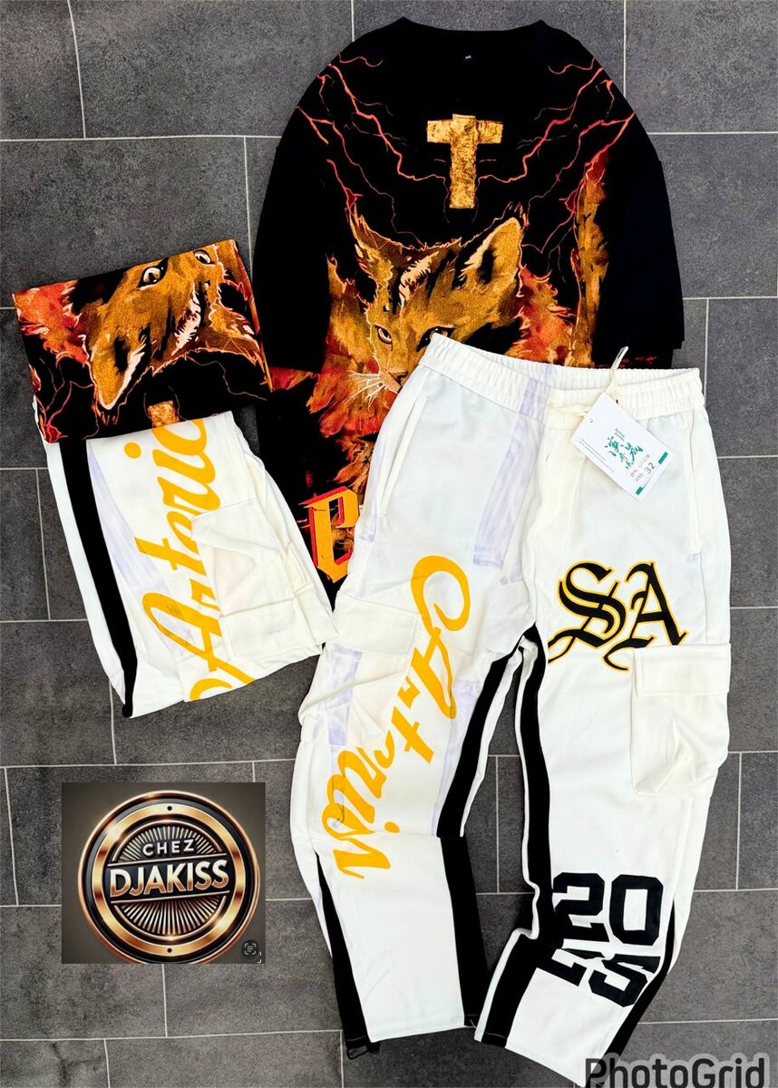 Survêtement pour homme, confortable et tendance. Comprend un tee-shirt et un pantalon de jogging. Idéal pour le sport ou le quotidien.