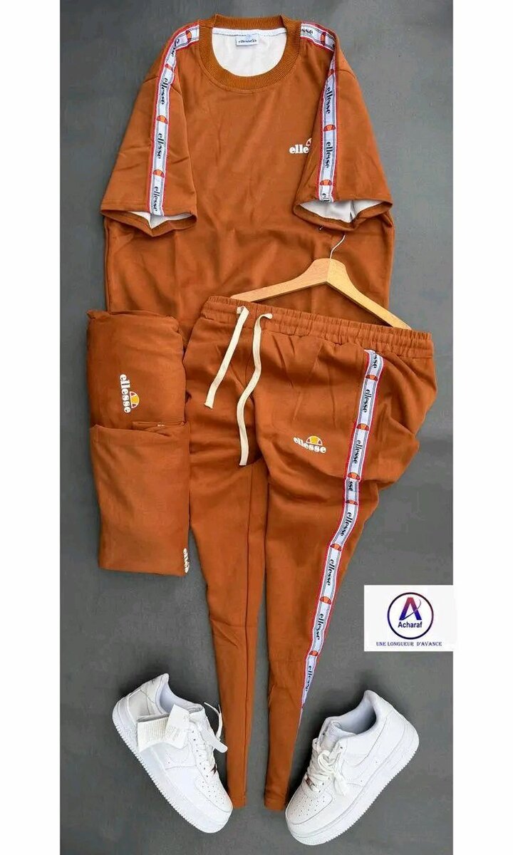 Ensemble survêtement homme confortable et tendance, composé d'un pantalon et d'un haut assortis. Idéal pour le sport ou les activités décontractées.