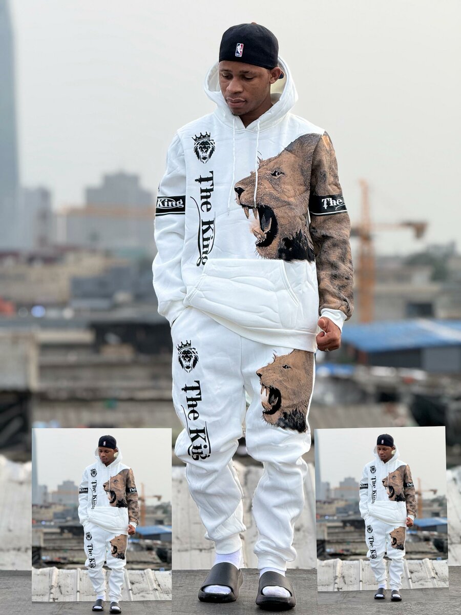 Affirmez votre style unique avec cet ensemble survêtement lion impressionnant. Confortable et audacieux, parfait pour se démarquer. Idéal pour les sorties décontractées ou les moments de détente. Démarquez-vous avec ce design audacieux et tendance!