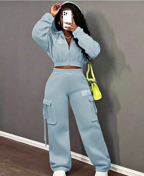 Survêtement femme marron et vert de la marque DOUTCHI FASHION. Conçu pour le confort et le style, cet ensemble comprend une veste et un pantalon assortis avec des accents dorés. Idéal pour les sorties décontractées ou les activités sportives.