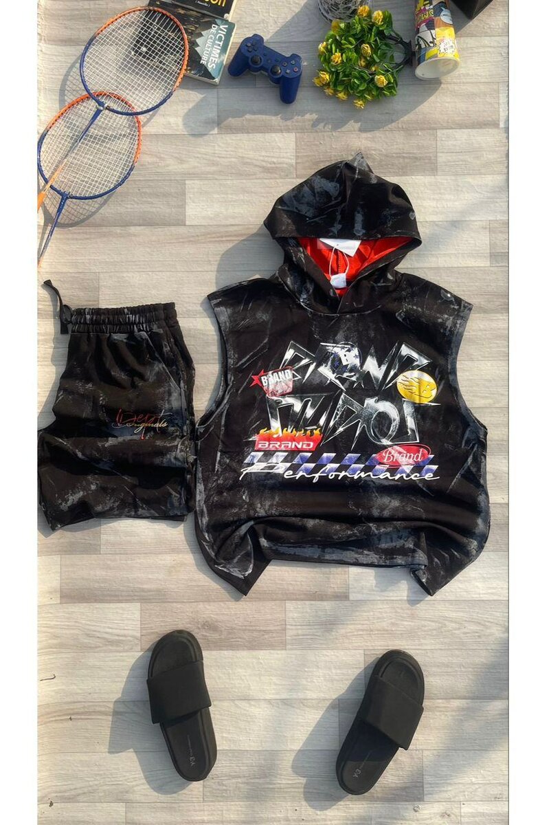 Ensemble survêtement sans manches pour hommes avec imprimé. Conception tendance et confortable. Idéal pour le sport et la vie quotidienne.
