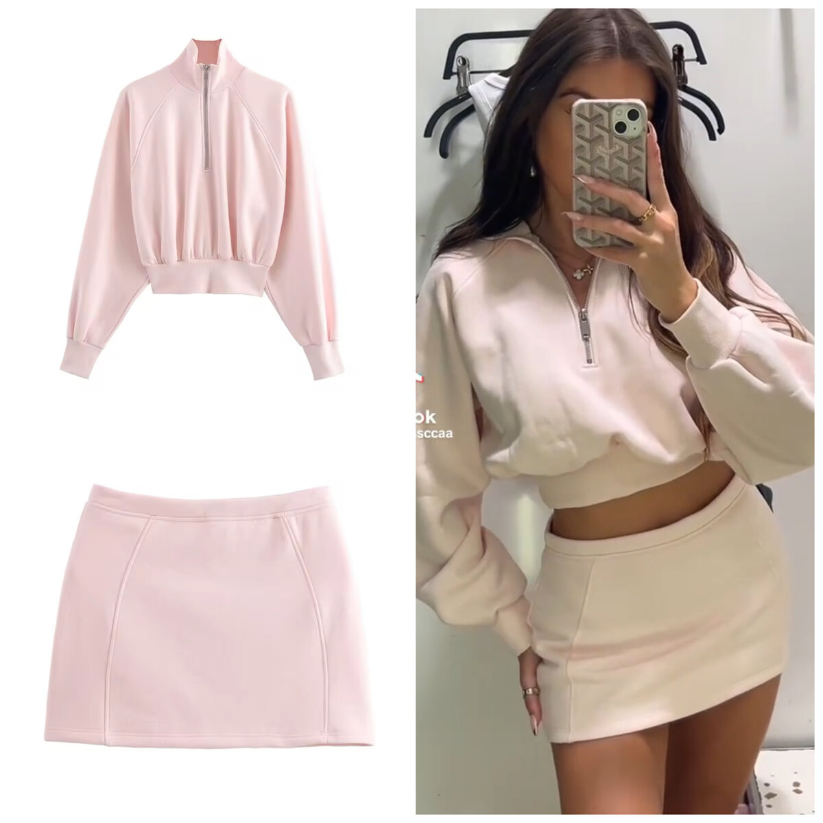 Découvrez cet ensemble tendance Zara composé d'un sweat à fermeture éclair et d'une jupe, parfait pour un look chic et décontracté. Idéal pour le printemps et l'été, cet ensemble offre un confort optimal avec une touche de style moderne. Portez-le pour une sortie entre amis ou une journée décontractée en ville.