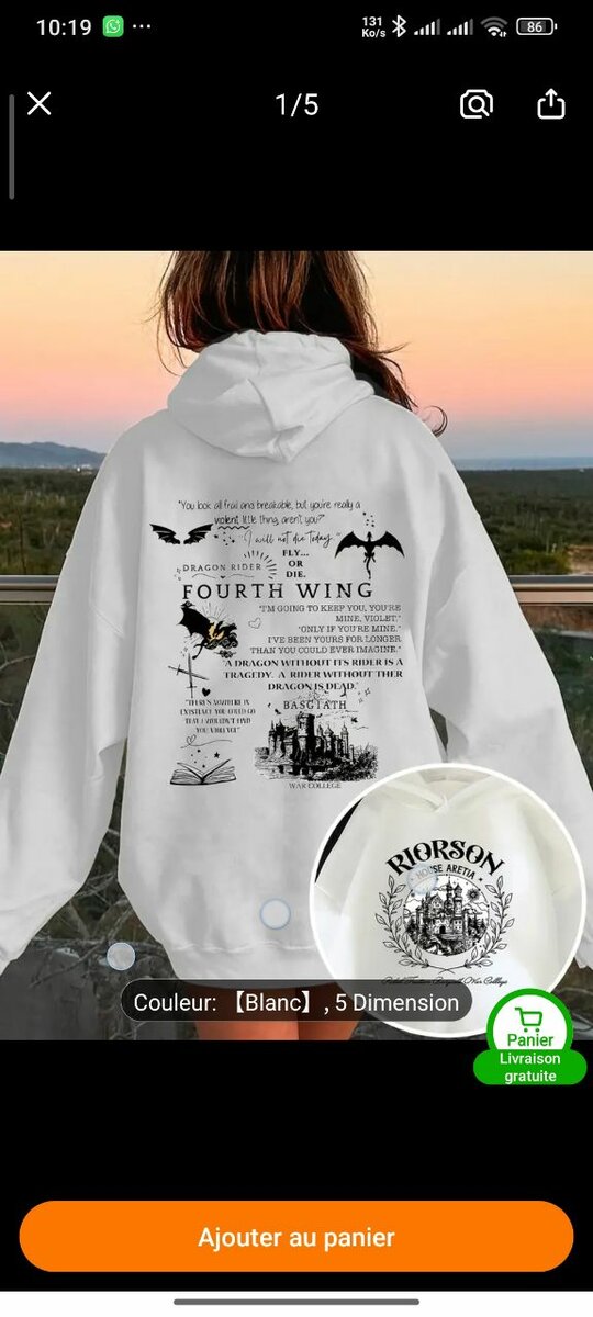 Découvrez l'ensemble 'Fourth Wing' comprenant un sweat-shirt et un mug inspirés de l'univers de la fantasy. Parfait pour les fans de littérature et de design unique.
