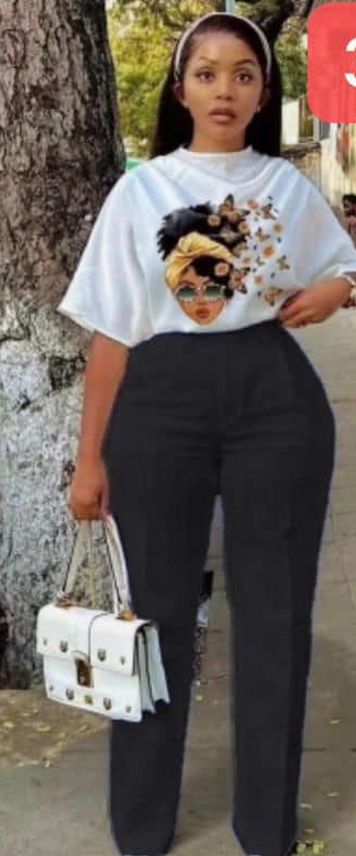 Ensemble T-shirt blanc imprimé + pantalon noir pour femmes, S M L XL