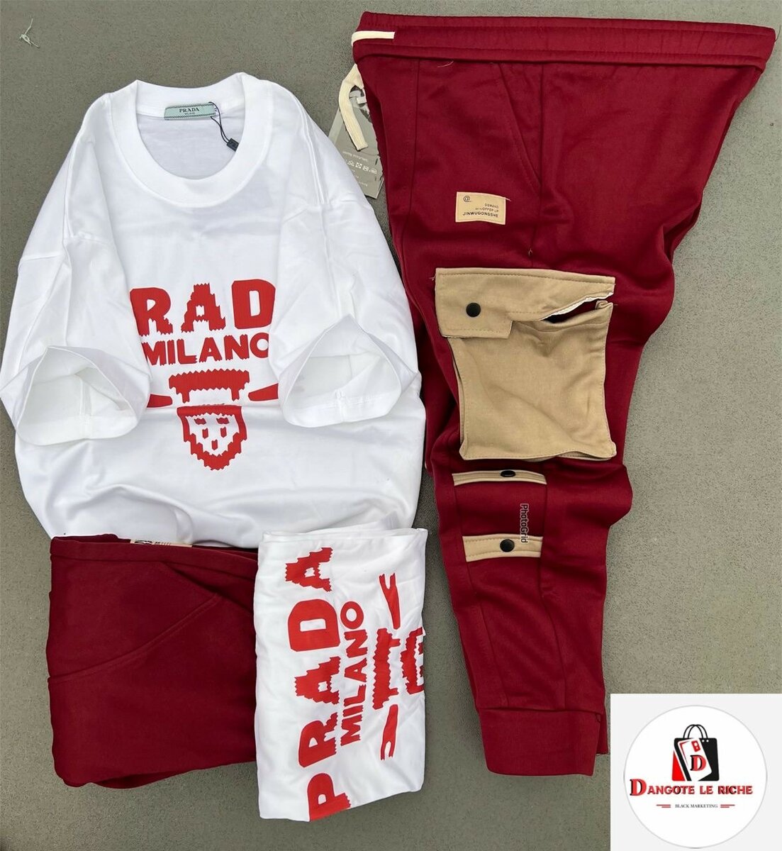 Parfait pour un look casual et tendance, cet ensemble T-shirt blanc et pantalon rouge est idéal pour se démarquer. Confortable et stylé, avec une poche fonctionnelle sur le pantalon, il convient pour toutes les occasions décontractées. Fabriqué avec des matériaux de qualité, il garantit un ajustement agréable et moderne. Idéal pour les sorties entre amis ou les moments de détente.