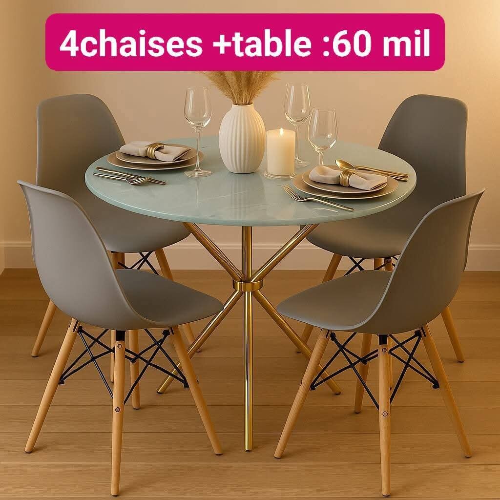 Transformez votre salle à manger avec cet élégant ensemble moderne comprenant une table ronde en verre et quatre chaises confortables. Idéal pour des repas en famille ou entre amis. Son design contemporain s'adapte parfaitement à tout intérieur. Parfait pour les petites et grandes pièces.