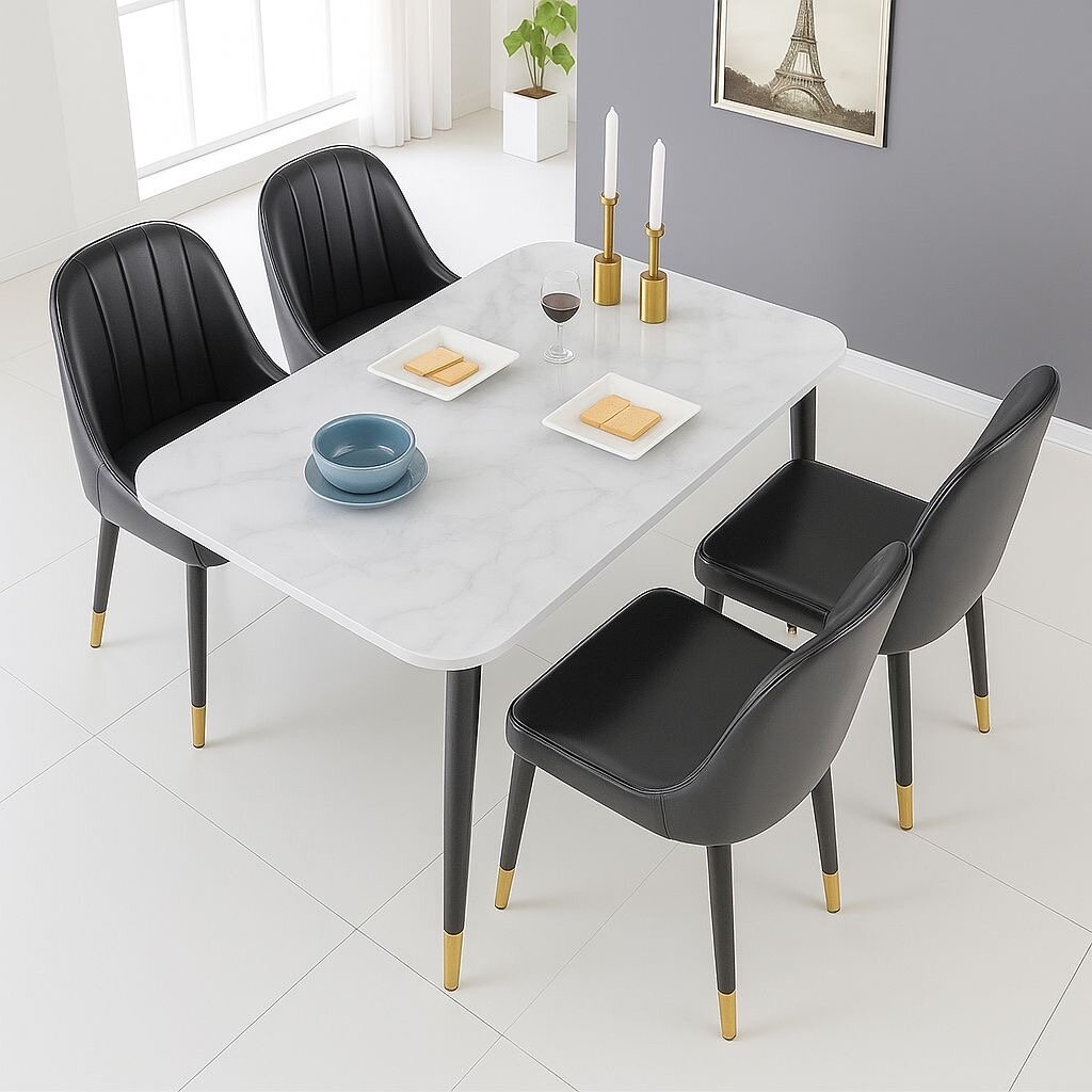 Transformez votre salle à manger avec cet élégant ensemble table et chaises. Doté d'un plateau en marbre élégant et de chaises confortables disponibles en plusieurs couleurs, c'est un choix parfait pour un intérieur moderne. Parfait pour les dîners en famille ou entre amis. Dimensions optimales pour un confort maximal.