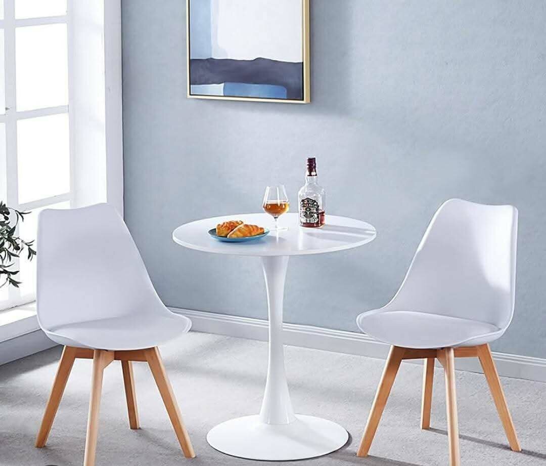 Profitez d'un coin repas moderne avec cet ensemble élégant de table ronde et deux chaises. Fabriqué avec des matériaux de haute qualité, il est parfait pour la cuisine ou le salon. Le design minimaliste s'intègre facilement dans tout intérieur.