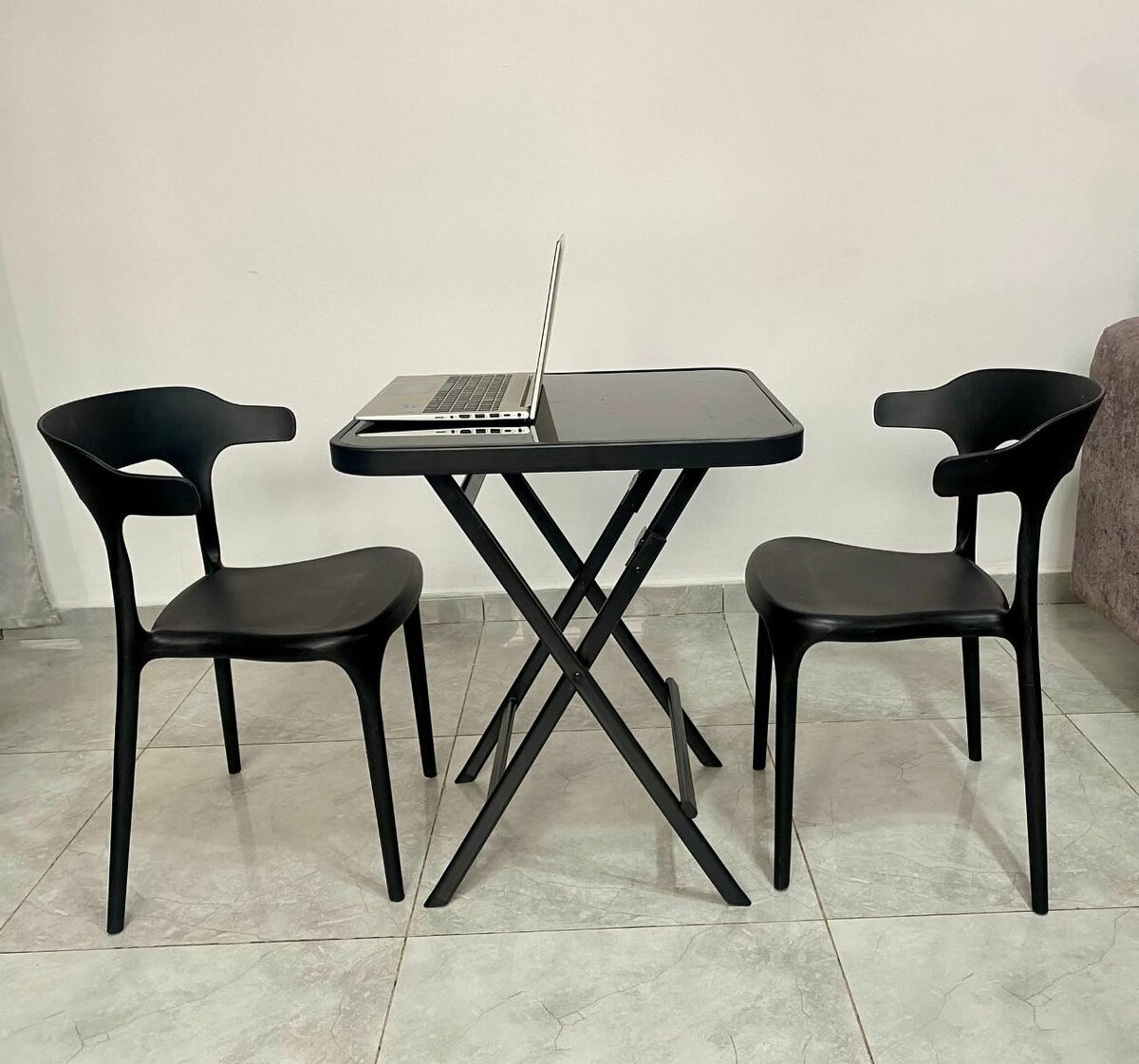 Découvrez cet ensemble élégant comprenant une table pliante et deux chaises modernes noires. Idéal pour un coin repas compact, ce set ajoute une touche de sophistication à votre intérieur. Parfait pour la cuisine, le bureau ou le balcon, il allie design et fonctionnalité.