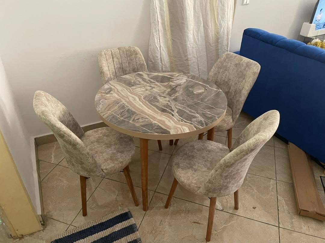 Optez pour cet élégant ensemble comprenant une table ronde et quatre chaises confortables. Parfait pour votre salle à manger ou cuisine. Design moderne, matériaux robustes et faciles à entretenir. Idéal pour des repas conviviaux en famille ou entre amis. Ajoutez du style à votre intérieur avec ce mobilier chic et fonctionnel.