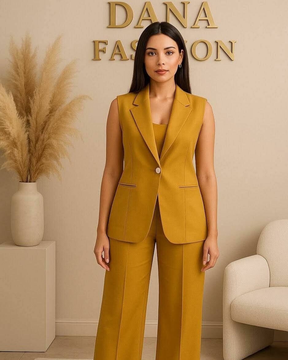 Élégant et moderne ensemble tailleur sans manches pour femme. Parfait pour les occasions professionnelles ou décontractées. Confort supérieur et style affirmé.