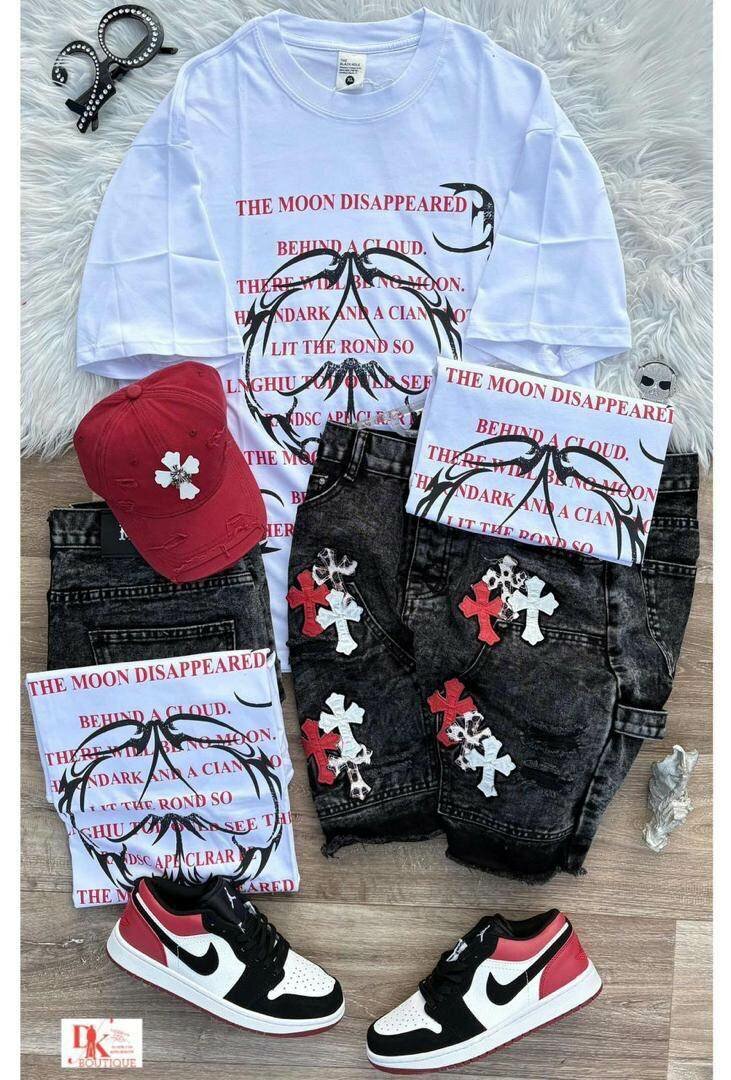 Découvrez notre ensemble tendance streetwear, parfait pour un look urbain et décontracté. Composé d'un t-shirt imprimé, de shorts en jean stylés, et de chaussures assorties, cet ensemble est idéal pour les sorties en ville ou les moments de détente. Complétez votre look avec une casquette pour un style encore plus cool. Confortable et moderne, cet ensemble est un choix incontournable pour tout amateur de mode urbaine.