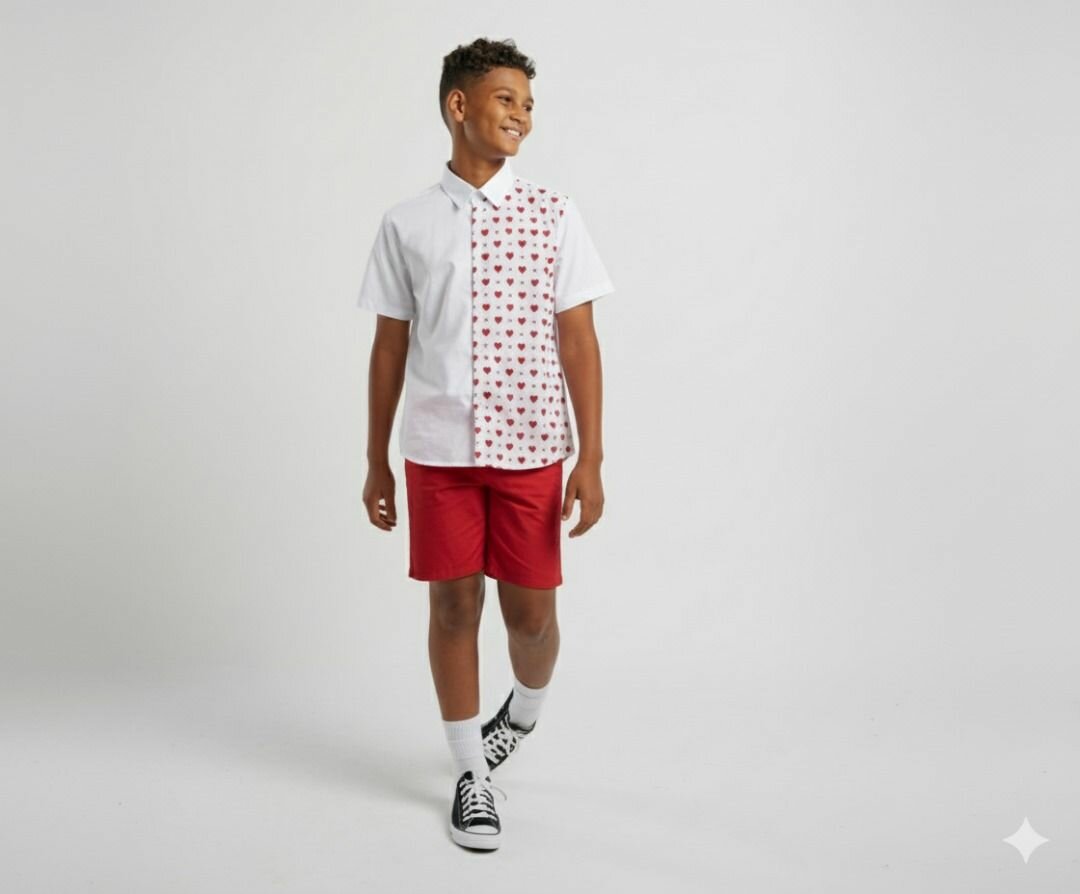 Chemise a boutons de couleur rouge blanc , short avec poche de couleur rouge très confortable