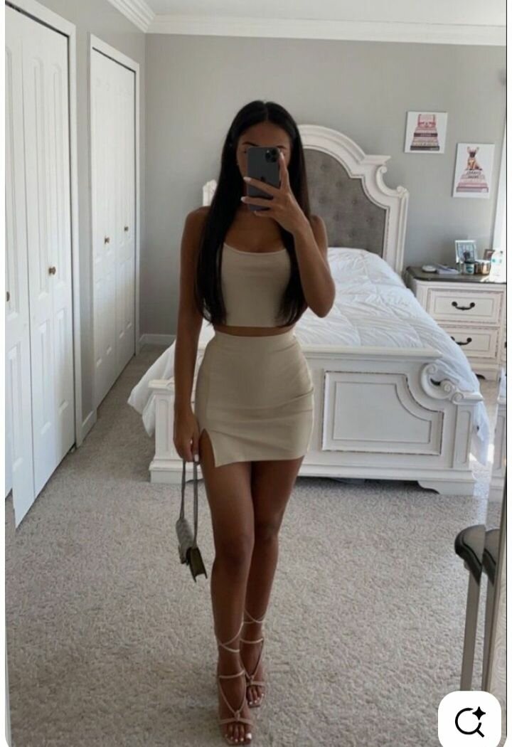 Parfait pour une tenue chic et élégante, cet ensemble beige comprend un top court et une jupe minijupe avec fente. Idéal pour des sorties estivales ou soirées spéciales, il accentue la silhouette avec style.