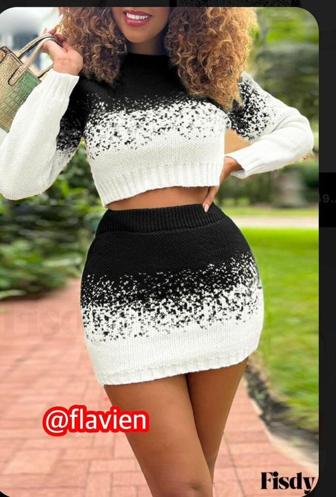Cet ensemble tricot femme combine un haut cropped et une jupe séduisante au style dégradé. Parfait pour un look chic et moderne, il est idéal pour les sorties en ville ou les occasions spéciales. Disponible en plusieurs coloris, il est conçu pour apporter confort et style.