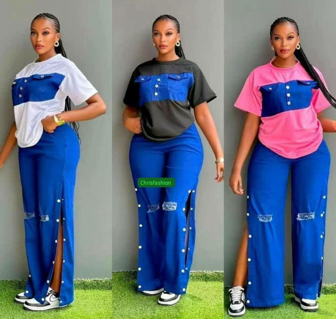 Optez pour cet ensemble tendance composé d'un t-shirt et d'un pantalon à boutons élégants. Idéal pour un look décontracté chic.