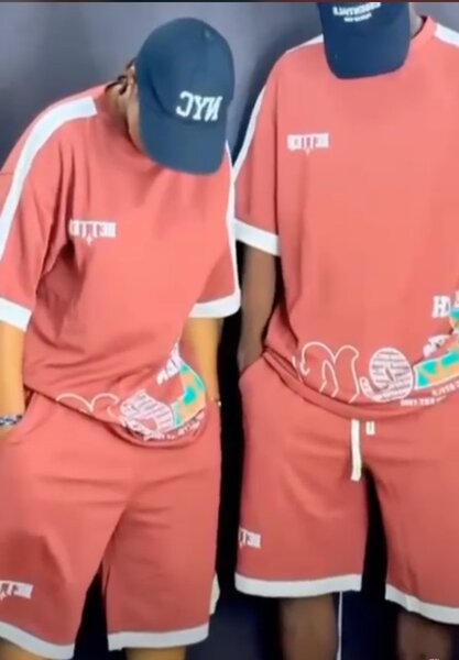 Ensemble élégant pour femme. T-shirt noir avec lettrage orange et pantalon noir avec liseré orange sur le côté. Confortable et tendance.