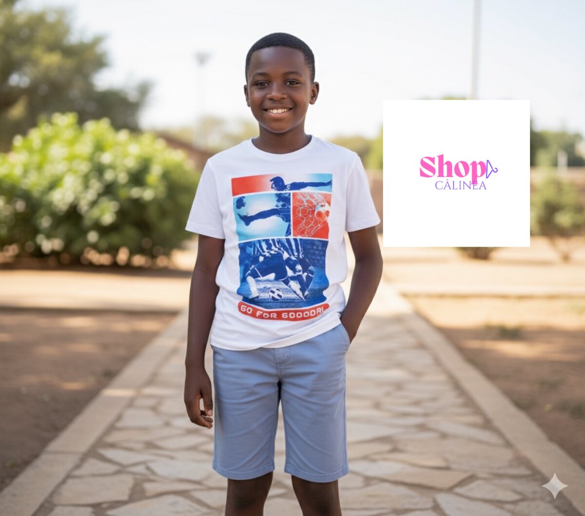 Cet ensemble stylé pour garçons comprend un T-shirt imprimé "Go for Goool" et un short confortable. Parfait pour les jeunes sportifs entre 10 et 14 ans, idéal pour le quotidien ou les activités sportives. Offrez le style et le confort à votre enfant avec ce design tendance!