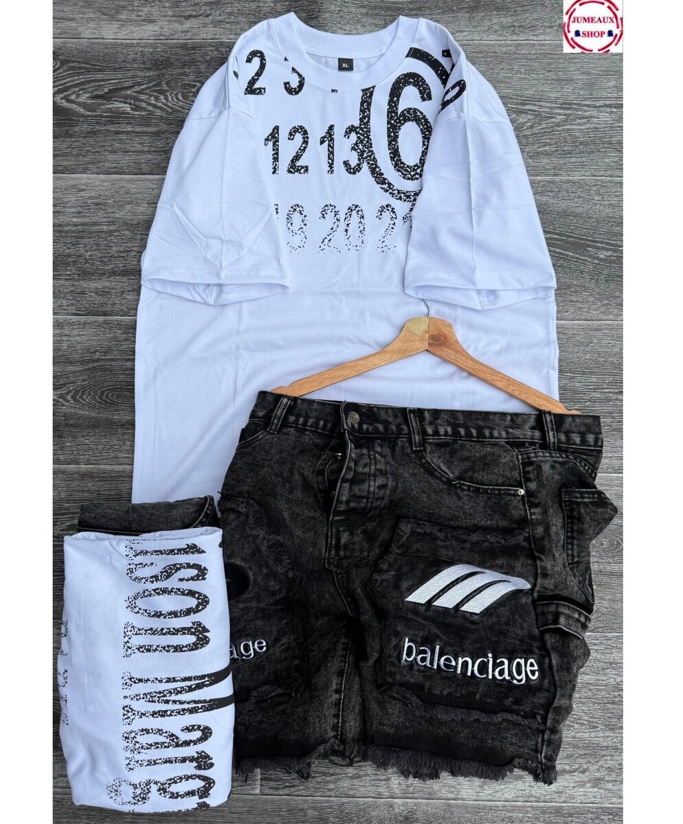 Optez pour un look urbain avec cet ensemble t-shirt et shorts décontractés. Fabriqué avec des matériaux confortables, il est idéal pour une sortie detente ou un look streetwear unique. Le design audacieux du t-shirt s'associe parfaitement avec les shorts noirs à imprimés distinctifs. Parfait pour les amateurs de mode avant-gardiste!