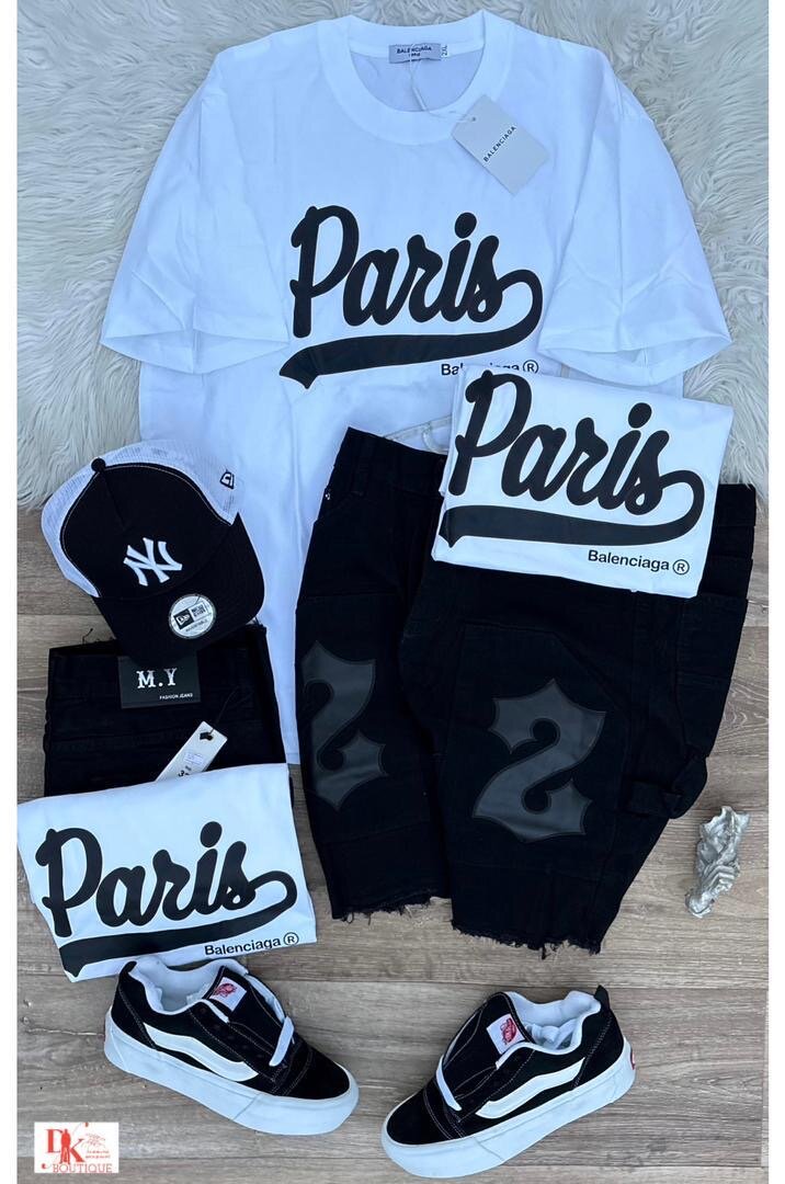 Découvrez cet ensemble moderne avec un T-shirt "Paris", parfait pour un look urbain et stylé. Fabriqué en coton de haute qualité, il assure confort et durabilité. Idéal pour le quotidien ou les sorties, ce vêtement s'harmonise parfaitement avec jeans et baskets pour un style décontracté mais affirmé. Fait pour ceux qui aiment le chic parisien!