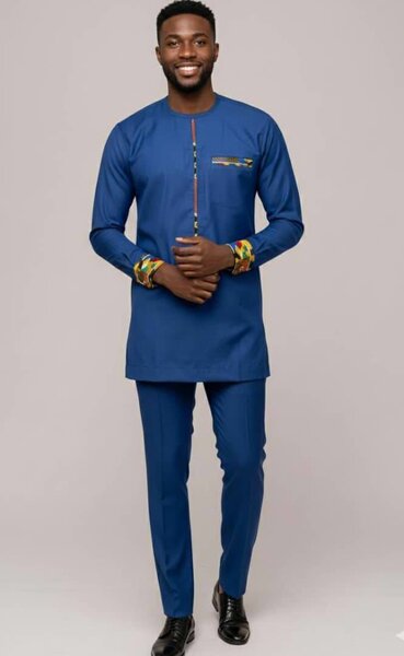 Ensemble tunique à rayures bleues Matière: Tissu 100% italien Taille : M - L - XL