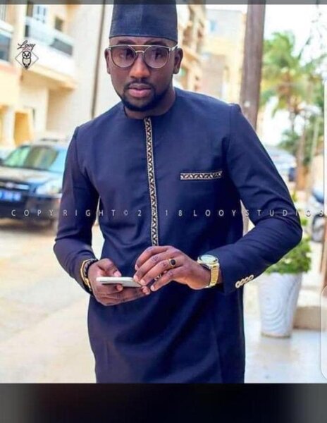 Ensemble Tunique Homme Manches longues de couleur bleu, fait en coton glacé et avec broderie extraordinaire. Propre et pratique pour vos différentes prestations et sorties.