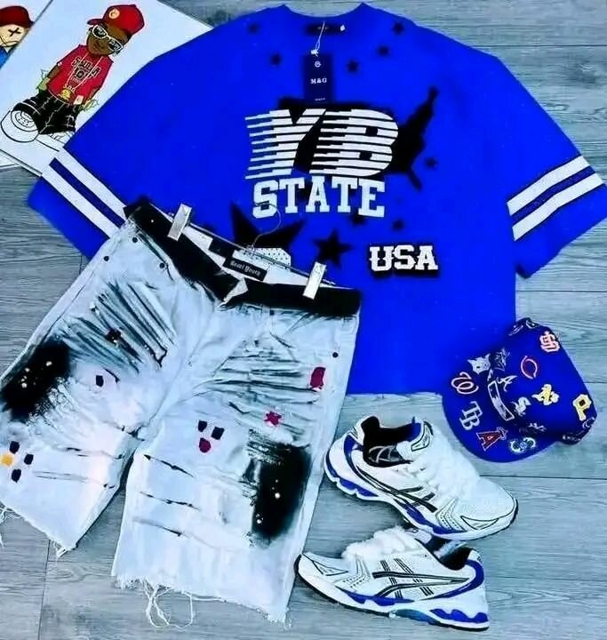 Optez pour un style audacieux et moderne avec cet ensemble urbain pour hommes. Comprenant un t-shirt coloré, un short en jean tendance et des accessoires assortis, c'est le choix idéal pour les sorties décontractées. Ajoutez une casquette et des chaussures coordonnées pour compléter votre look unique. Soyez prêt à impressionner à chaque occasion!
