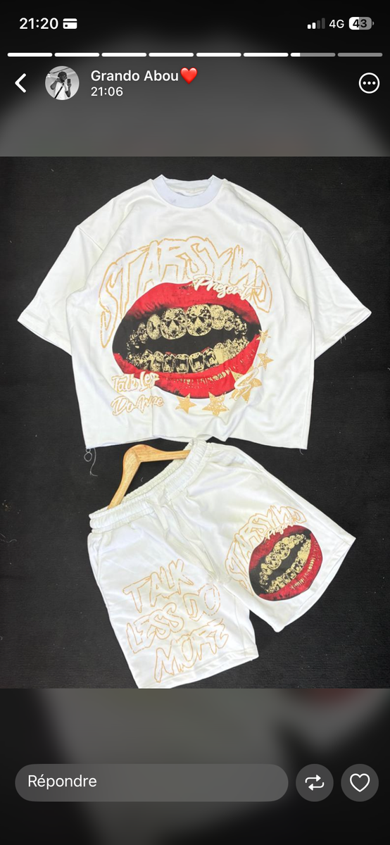 Découvrez cet ensemble urbain tendance, idéal pour un look moderne et audacieux. Composé d'un t-shirt et d'un short assortis, il est parfait pour un style décontracté et confortable. Fabriqué avec des matériaux de qualité, cet ensemble est disponible en plusieurs coloris distinctifs. Parfait pour vos sorties en ville ou vos moments de détente, cet ensemble combinera style et fonctionnalité avec brio.