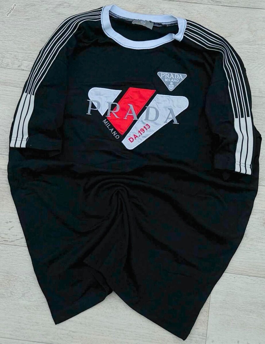 Découvrez cet ensemble de vêtement sport Prada pour homme, composé d'un survêtement et d'un t-shirt noir. Parfait pour un style décontracté et élégant.
