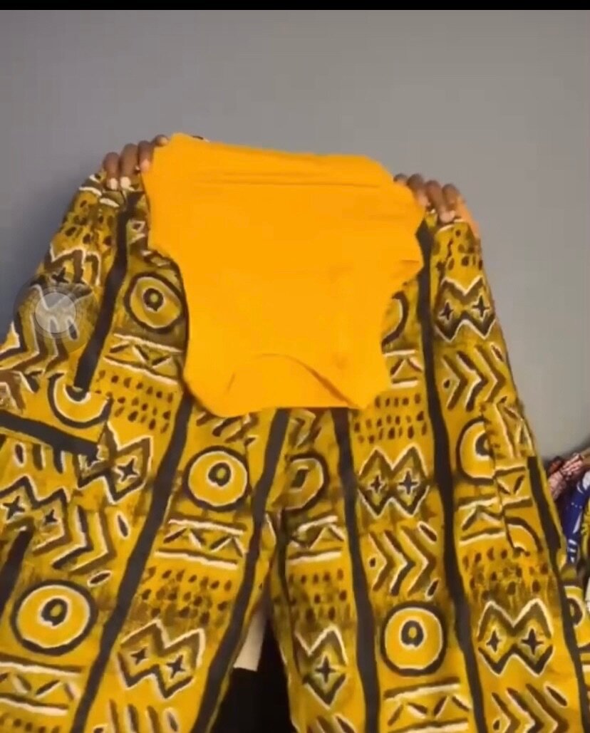 Découvrez cet ensemble vibrant combinant des motifs africains audacieux et des couleurs éclatantes pour un style unique et accrocheur. Parfait pour les occasions festives et pour ajouter une touche de couleur à votre garde-robe. Confortable et moderne, il se compose d'un haut et d'un pantalon assortis. Capturez l'esprit de l'Afrique avec élégance et assurance.